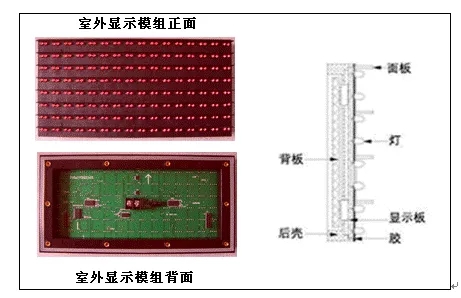 上圖為16x8(2紅)的室外屏模組。加了防水結構用于全戶外,我們可以看到塑料殼體,最右側是它的整個結構刨圖:顯示板上插的是燈珠、背板上是顯示驅動電路,這是分體結構的,也有的是將顯示板和顯示驅動電路做在一塊電路板上的整體結構的,下面的兩個圖我們可以看到區(qū)別。面板、后殼其實是一個塑料罩殼,面板上對應燈珠位置開有孔,以使燈珠漏出頭,后殼上有用于安裝的螺絲孔或磁柱,使模塊便于組裝。模塊的前面灌有顯示屏專用的防水膠。