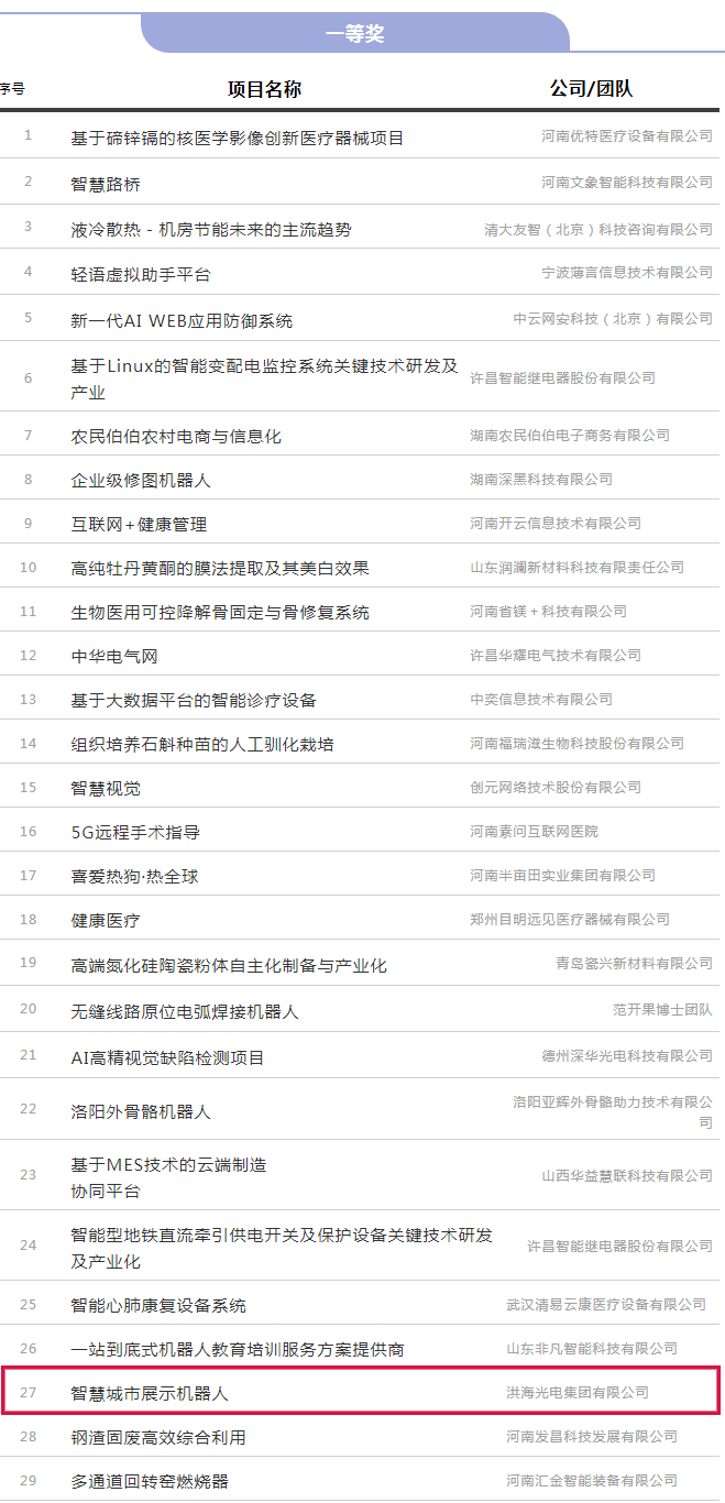 清華校友第五屆三創(chuàng)大賽中原賽區(qū),歷時(shí)6個(gè)月,共收到來(lái)自湖南、湖北、山東、山西、河南五個(gè)省份的102個(gè)項(xiàng)目報(bào)名參賽。圍繞大數(shù)據(jù)、健康醫(yī)療,先進(jìn)制造,人居環(huán)境、文創(chuàng)體育等領(lǐng)域,在各賽點(diǎn)初賽的基礎(chǔ)上,7月29日在鄭州舉行了中原賽區(qū)決賽。我司參與項(xiàng)目“智慧城市展示機(jī)器人”通過(guò)線上參賽的形式,在決賽中脫穎而出,獲得了各個(gè)專(zhuān)家評(píng)委的一致肯定,取得中原賽區(qū)一等獎(jiǎng),并獲得推薦參加全球總決賽。