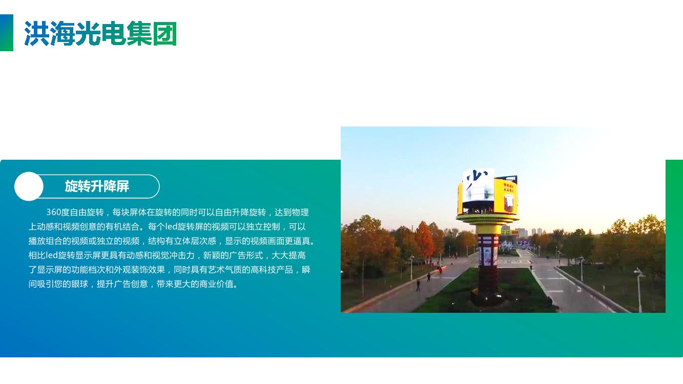 相比led旋轉(zhuǎn)顯示屏更具有動(dòng)感和視覺沖擊力,新穎的廣告形式,大大提高了顯示屏的功能檔次和外觀裝飾效果,同時(shí)具有藝術(shù)氣質(zhì)的高科技產(chǎn)品,瞬間吸引您的眼球,提升廣告創(chuàng)意,帶來更大的商業(yè)價(jià)值。