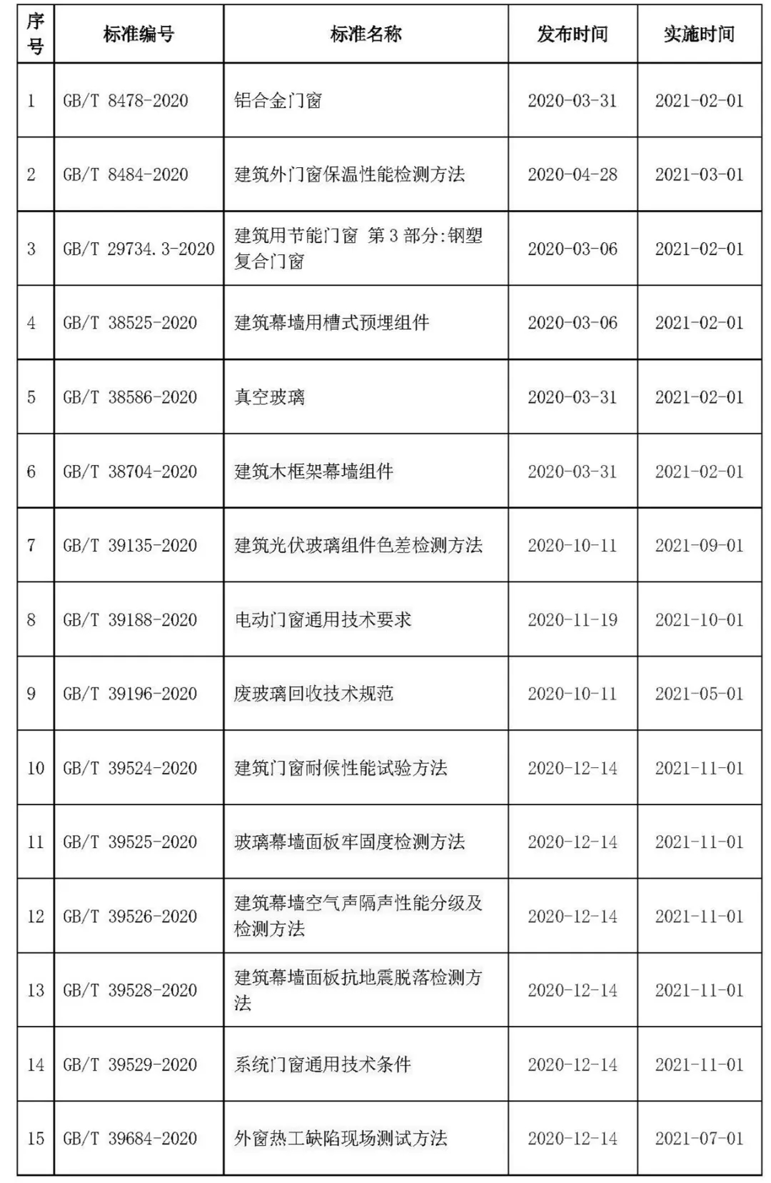 幕墻門窗國家標準(2020)