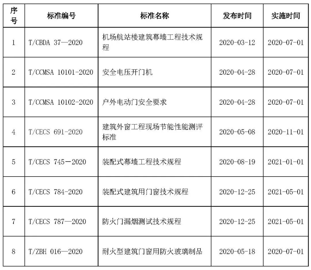 幕墻門窗行業(yè)標準(2020)
