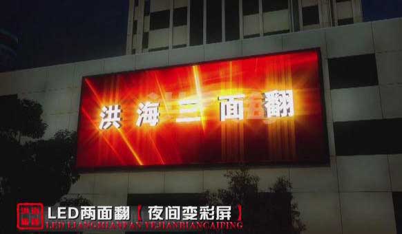 led兩面翻顯示屏將三面翻和電子顯示屏有機(jī)地巧妙結(jié)合,使其造價(jià)遠(yuǎn)遠(yuǎn)低于普通的電子顯示屏。投入低,用途廣,可以演繹無(wú)限的精彩內(nèi)容,可以容納大量的廣告客戶(hù),最大限度地提高廣告投資商的投資回報(bào)率。使用壽命長(zhǎng),可移動(dòng)性。那么就由洪海光電工程師為大家介紹下led兩面翻顯示屏優(yōu)勢(shì)。