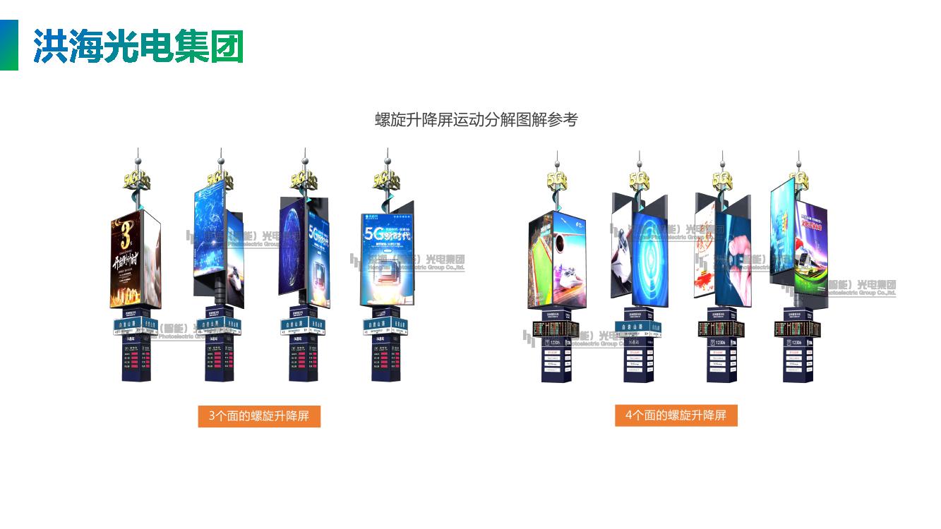 具體來說是:螺旋升降屏是由三面或者四面LED顯示屏箱體組合,在旋轉支撐、不繞線導電刷、轉動花樣軟件編程等多個系統(tǒng)配合下,使三面或者四面LED顯示屏按照電腦編制的程序---不同時間花樣轉動---定格在一個平面,展示三個視頻畫面。相比傳統(tǒng)顯示屏更具有動感和視覺沖擊力,新穎的廣告形式,大大提高了顯示屏的功能檔次和外觀裝飾效果,同時具有藝術氣質的高科技產品,瞬間吸引您的眼球,提升廣告創(chuàng)意,帶來更大的商業(yè)價值,成為美化城市的城市地標。Led旋轉魔方屏廣泛用在機場、商場、高鐵站、火車站、公園廣場、商業(yè)街、大型購物中心、高端產品發(fā)布會等地方。