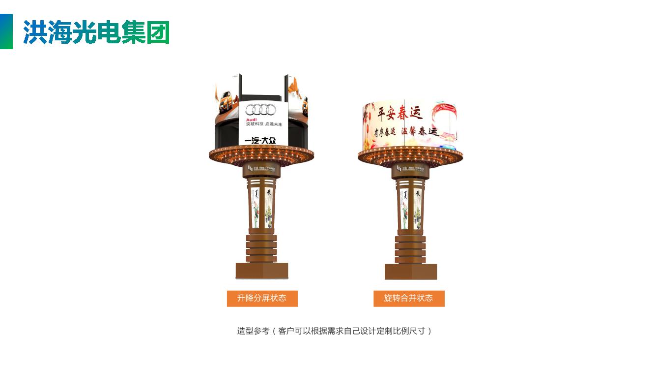 相比led旋轉(zhuǎn)顯示屏更具有動(dòng)感和視覺沖擊力,新穎的廣告形式,大大提高了顯示屏的功能檔次和外觀裝飾效果,同時(shí)具有藝術(shù)氣質(zhì)的高科技產(chǎn)品,瞬間吸引您的眼球,提升廣告創(chuàng)意,帶來更大的商業(yè)價(jià)值。
